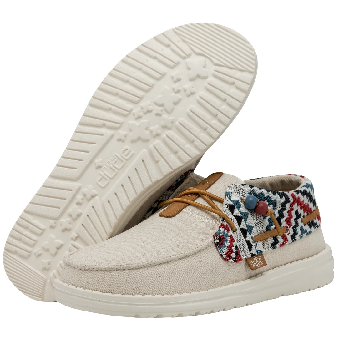 Take a look at these fun Joshua tree Hey Dudes. These feature a mid-cut, slip-on style moc perfect for festival season made to last all year long. Boho-chic inspired details and a touch of leather comes together on a cotton-blend upper to provide comfort that won’t go unnoticed. Finished off on an ultralight outsole and no-tie, elastic laces.