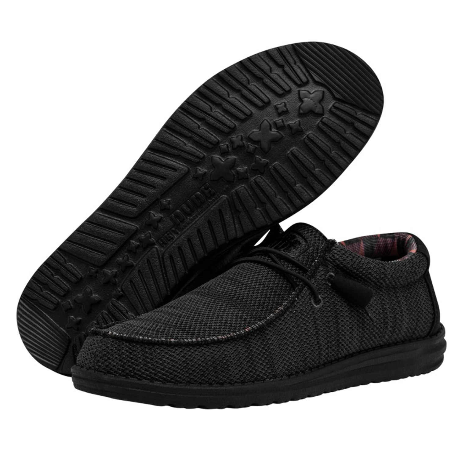 These men’s shoes from Hey Dude are a jet black color with a black sole! Hey Dude shoes are comfortable and very light weight!