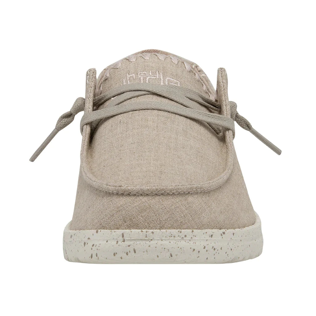 These Hey Dude Wendy Dusty Inca’s are a soft, breathable cotton canvas in an easy, neutral color. Featuring an easy-on system with elastic laces and an ultralight outsole for all-day comfort. A perfect shoe for everyday wear.Â