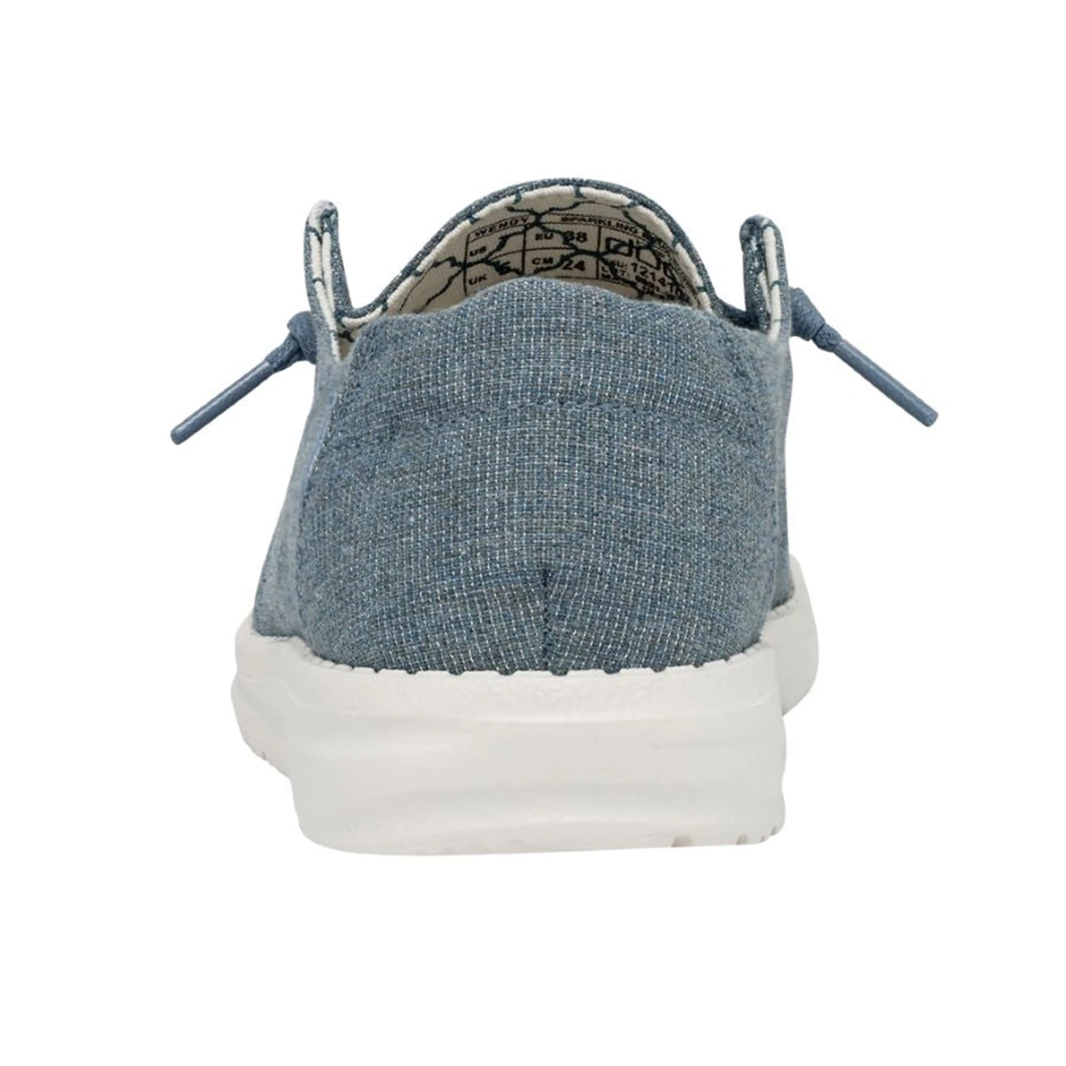 The Wendy Sparkling Blue Stone from Hey Dude is just what the name implies. It shines like a diamond. Add a little light in your wardrobe with these fun, yet comfy Dudes!Â