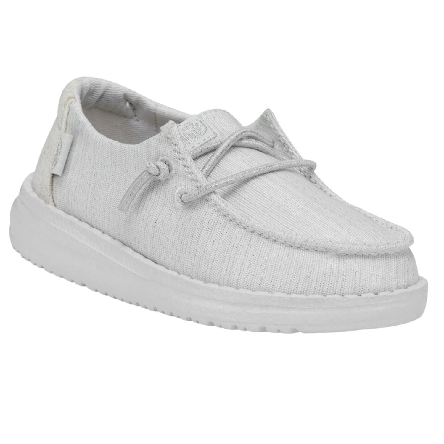 Get kids ready for all of life’s adventures with the Hey Dude Toddler Girls’ Glitter Wendy Slip-On Shoes. These iconic moccasins feature breathable cotton canvas uppers with stretch laces for easy slip-on style. Ultralight outsoles won’t weigh her down.